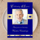 Este 65º convite de aniversário apresenta uma foto da honestidade de aniversário como o ponto focal com sotaques dourados sobre um fundo azul marinho. As palavras "Celebrando 65 anos" aparecem acima da foto. As palavras "Por favor, juntem-se a nós para homenagear" juntamente com o nome da honra aparecem abaixo da foto. Na parte inferior está um bar ouro com formas de diamante azul marinho. O verso do convite inclui todos os detalhes especiais do 65º convite de aniversário. Direitos autorais