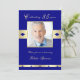Marinho e ouro são as cores usadas para criar este convite de aniversário 85. Uma foto do seu amado é o ponto focal desta design. A foto se senta em dentro, uma bela estrutura de ouro que tem bares em ambos os lados com um dentro de forma de diamante azul marinho. As palavras "Celebrando 85 anos" estão acima da foto e as palavras "Por favor, junte-se a nós para homenagear" estão abaixo da foto, junto com o nome da honraria. Abaixo está outro bar de ouro com formas de diamante de marinho. A parte traseira apresenta todos os detalhes do 85º convite de aniversário. Uma forma excelente de convidar convidados para uma 85ª festa de aniversário. Direitos autorais