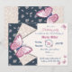 marinho azul borboletas rosa convite de aniversário floral