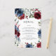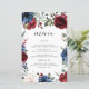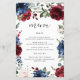 Modelo apresenta uma coroa elegante de flores a aquarela em tons de vermelho-burgundy, Marsala, marinho e rosa-pincel com um esquema tipográfico moderno.
