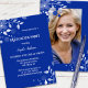 Convite de festa de formatura minimalista elegante com flores pintadas de cor d'água em fundo azul marinho com sua própria foto personalizada no verso.