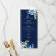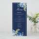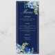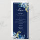 As rosas brancas e azuis elegantes decoram este belo cardápio floral jante para um casamento no inverno. A página de chic é destacada com flores bonito a aquarela indigo e um adorável galho botânico amarelo-claro. Adicione seu curso e lista de sobremesas em roteiro branco para seus convidados.
