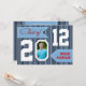 Os números brancos e a pop de letras vermelhas da página deste convite para a graduação de fotos com listras azuis de denim e marinho. Ele tem um ponto para você incluir uma foto digital do formando na área formando o número zero. Se precisar de ajuda para personalizar isto ou se quiser que seja em outra combinação de cores, envie seu pedido para niteowlstudio@gmail.com.