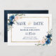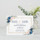 Um belo casamento geométrico floral moderno salve o cartão de data com gráficos florais de cor d'água pintados manualmente / rosas em tons ricos de azul marinho e cor-de-rosa pincelada com moldura dourada. Entre em contato comigo para obter ajuda sobre a personalização ou se você precisar de outro produto com este design.