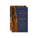 A borda esquerda deste elegante convite de casamento moderno apresenta uma cor de água laranja queimada, aparada com falsa brilho dourado. O texto personalizável combina o script dourado e as fontes sans serif em um fundo azul marinho. Um design de agate laranja queimado correspondente é exibido na parte traseira da placa.