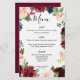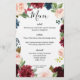 O cartão de cardápio floral, elegante e moderno, com cor d'água romântica apresenta um buquê de burgundy / marsala, cor rosa pincel, púrpura, pêssego, rosas de cor d'água azul marinho com folhagem correspondente. Perfeito para um casamento no outono/no meio do verão. Por favor, encontre mais designs e variações na minha loja de "blisswedingpaperie". E sinta-se à vontade para contactar-me para mais personalizações ou itens correspondentes