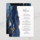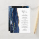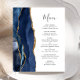 A borda esquerda deste elegante cardápio moderno de casamento apresenta uma marinho azul de aquarela agata bordada com falso brilho dourado. O texto personalizável combina o script de escrita manual e as fontes de impressão em cinzas de carvão em um fundo branco. O verso apresenta um design azul-marinho e um agate-ouro correspondentes.