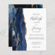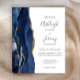 A borda esquerda deste elegante convite de casamento moderno apresenta um marinho azul de aquarela agata borda aparada com falso brilho dourado. O texto personalizável combina manuscrito, copperplate e fontes itálicas em cinzas de carvão em um fundo branco. O verso apresenta um design azul-marinho e um agate-ouro correspondentes.