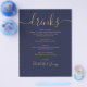 Marinho Azul Dourado Menu Drinks de Casamento de S