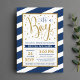 Marinho Azul Dourado Stripes Menino Chuva Convites