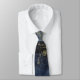 Uma pintura de aquarela azul marinho com pinceladas de ouro e elementos que criam uma sofisticada gravata de pescoço de um estilo artístico moderno.