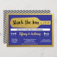 QUALQUER IDADE. QUALQUER EVENTO. Todo o texto sob o dourado de couro falso "Stock The Bar" é editável. Você pode personalizá-lo para qualquer evento - Aquecimento doméstico, Chá de Casais, Festa de noivado, Chá de panela, etc. Convite de ouro elegante com marinho azul e ouro. Clássico, chico e glamouroso. Receba este belo convite agora!