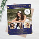 Crie sua própria colagem de fotos exclusiva. Use quatro, quatro das suas fotos favoritas. Personalize e adicione um nome e detalhes da parte. fundo azul marinho, estrelas ouros e texto.