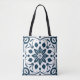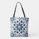 Marinho Azul Floral Azulejo Padrão Tote Bag