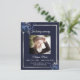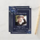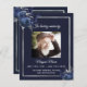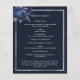 Um elegante programa de 2 páginas. Um fundo azul escuro, um falso quadro prateado, florais azuis e espaço para uma foto. Personalize e adicione nome, datas e texto.