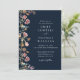 Marinho Azul Flores Selvagens Convite para Casamen