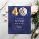 Um convite fotográfico moderno e minimalista para um partido aniversário de 40 anos. Um fundo azul marinho, incolor. Personalize e adicione uma foto e detalhes da festa. 1 folha = 1 convite impresso de borda a borda.