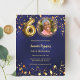 Um convite para fotos moderno e na moda para uma 60ª festa de aniversário. Um fundo azul marinho, decorado com estrelas ouros. A cor azul é irregular. Personalize e adicione sua foto e detalhes da festa. 1 folha = 1 convite impresso de borda a borda.