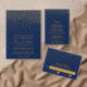 A coleção de casamento de confete de ouro azul e marinho é perfeita para qualquer casal planejando uma celebração romântica de casamento. O design apresenta um fundo azul marinho chic com um confete dourado glam que é verdadeiramente espantoso e perfeito para qualquer evento especial. O texto incorpora a mesma cor dourada do design e pode ser facilmente personalizado para a sua ocasião de rico. Itens correspondentes podem ser encontrados abaixo..