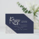 Marinho de tipografia azul de prata no casamento Rsvp, tipografia de prata no bloco de cor azul marinho personalizável e falso prata geométrica stripes chic no casamento rsvp, perfeito para o casamento elegante,