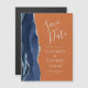 Esta elegante placa de imã salve a data moderna apresenta uma marinho azul de aquarela agata bordada com falso brilho prateado. O texto personalizável é cinza prateada leve em um fundo laranja queimado.