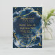 Vocês vão adorar este design azul de aquarela marinho com círculo geométrico dourado e brilho. Excelente para o seu local de casamento!