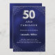 Um fundo azul marinho, incolor. Decorado com cantos falsos de prata. Personalize e adicione um nome e detalhes da parte.