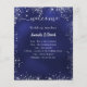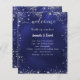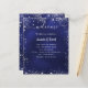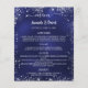 Um clássico programa de casamento e cardápio. Um fundo azul marinho. A cor azul é irregular. Texto branco. Decorado com falso brilho prateado, faíscas. Personalize e adicione seu nome, data e programa e menu. 1 folha = 1 menu impresso borda a borda.