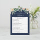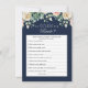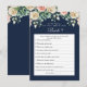Marinho Blue Floral que conhece o melhor jogo da noiva - apresenta um roteiro decorativo com rosas rosa pinceladas elegantes e flores bege creme, folhas verdes. O reverso deste Jogo de Resposta é marinho azul com flores roromânticas cor-de-rosa e bege.