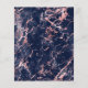 Este elegante convite para o casamento apresenta um design de borda azul-marinho na imitação de mármore veinado com folha de ouro rosa, desaparecendo gradualmente no fundo branco. A palavra "casamento" aparece em escrita manual azul marinho escuro, com o texto restante em maiúsculas de serifa. O padrão de mármore rosa e azul-marinho do é repetido na parte traseira da placa.