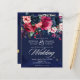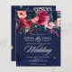 Marinho azul burgundy flores vintage rosa convite para casamento modelo com código QR RSVP, apenas adicione seu endereço url e zazzle gerará seu código