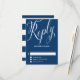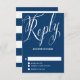 Cartão RSVP náutico com script de caligrafia química e listras em azul marinho. Isto é parte de uma suíte de casamento. Outras cores e itens correspondentes estão disponíveis na minha loja.