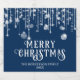 Luzes de cordas marinhos azuis e brancas acendem as etiquetas da garrafa de vinho da festa de Natal com uma bela festa de diversão para um Feriado Festivo.