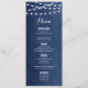 Design de cardápio moderno de verão com simples luzes brilhantes de cordas, penduradas no topo, e uma mistura elegante de fontes modernas e caligráficas em um plano de textura de cor-de-água falso impresso. Um design de pré-disquete simples e na moda, perfeito para o verão! Clique no botão PERSONALIZAR TI para personalizar fontes, mover texto e criar seu próprio design de convite exclusivo.