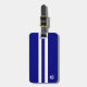 Esta etiqueta de bagagem moderna foi projetada para homens e apresenta uma faixa azul marinho com duas faixas brancas sobre fundo azul marinho. Seu monograma aparece embaixo e você pode personalizar a etiqueta com seu nome, endereço e telefone no verso. Copyright Kathy Henis