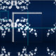 Linda cereja branca floresce num fundo azul marinho.