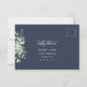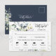 Este cartão postal de resposta ao evento de casamento RSVP com 4 opções de escolha de refeição apresenta um estilo moderno elegante com folhas de folhagem verde em aquarela e lindas caligrafias e fontes de tipografia limpa e serif em um fundo azul marinho. A simplicidade e a design limpa deste cartão de resposta RSVP de casamento funciona bem com todos os temas de casamento e definitivamente um acréscimo excelente ao seu casamento. Apenas personalize os nomes dos casais, a data, 4 opções de refeições e outras informações em alguns passos fáceis e personalize-os para lhe dar um toque pessoal agradável. Ícones de rações disponíveis: peru, ganso, veneno, pato, cordeiro, porco, carne bovina, galinha, marisco e vegetariano. Se você quiser alterar os ícones de refeição, clique no botão "editar usando a ferramenta design" para personalizar as opções de refeição. Por favor, note: as belas e elegantes frases de tipografia de "gentilmente responder" e "gentilmente entregar a" juntamente com a aquarela verde folhagem eucalipto folhas arranjos e outros elementos gráficos de trabalho de arte, como as linhas e caixas retangulares, não podem ser editados, alterados, movidos ou excluídos. Eles estão consertados.
