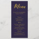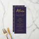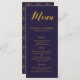 Um menu de casamento rústico, mostra seu conteúdo personalizado em cor dourada sobre fundo azul cobalto. ________________________________________________________________________: Este é um menu impresso em formato simples, se precisar de uma versão dobrada, entre em contato com, crio produto personalizado para você. _________________________________________________________________________________