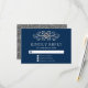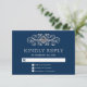 Placa RSVP Elegante com um design florescente bonito contra um fundo azul marinho.