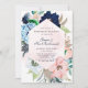 Design apresenta um elemento floral colorido impresso em tons de azul marinho, azul empoeirado e borrado cor-de-água cor-de-rosa com fundo canvas de cor-de-água. Caligrafia ou tipo escrevendo com o trabalho de arte de design. Esta é uma coleção de mistura e combinação. Excelente para as comemorações do casamento!