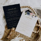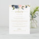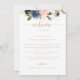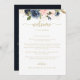 Esta carta de boas-vindas do casamento floral de ouro esmagador de marinho é perfeita para um casamento rústico. A design apresenta belas flores azuis escuras pintadas manualmente, azuis, marinhos, rosa, pinceladas, douradas e folhagem verde. Personalize a frente com uma mensagem de boas-vindas para seus convidados e seus nomes. Personalize as costas com a programação de eventos e outras informações úteis.
