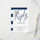 Cartão RSVP de casamento elegante e moderno com script de caligrafia caprichosa em padrão de marinho e listras. Isto é parte de uma suíte de casamento. Outras cores e itens correspondentes estão disponíveis na minha loja.