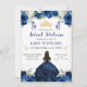 A Elegante aquarela Brunette carregou princesa em Marinho azul design com flores azuis e brancas, borboletas e confete dourado.