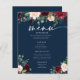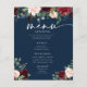 Menu Borgonha e Blush do Marinho Boho. Este cartão é caracterizado por rosas e flores boho burgundy e blush com duas fontes modernas de alta classe que moldam as tendências dos eventos festivos atuais e futuros.