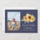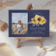 Este elegante convite para a graduação de girassol apresenta um buquê de girassol de cor d'água com sua foto de formando sobre um fundo azul de marinho. A parte traseira apresenta mais 3 fotos com espaço para seus detalhes de nome e graduação.