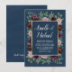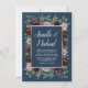 Marinho cor-de-rosa poeirento Convites azuis Rosa - apresentar verde (eucalipto) sobre um fundo de cor azul marinho com elementos florais em tons de roxo, ameixa, massa, rosa poeirento e lama profunda. Nota: este é pré-dimensionado de 4,5" x 6,25". Você pode redimensioná-lo para tamanhos menores ou mais comuns, como 5" x 7", ou ver a coleção nesta página para comprar o convite pré-dimensionado de 5" x 7".