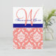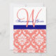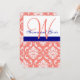 Marinho Coral Damask Monograma Convite de Casament