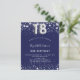 Um convite moderno, na moda e glamouroso para uma 18ª festa de aniversário. Um fundo azul marinho, decorado com estrelas de falso prata. Personalize e adicione seu nome e detalhes da festa. O número 18 é escrito com uma fonte no estilo do balão. 1 folha = 1 convite impresso de borda a borda.
