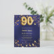 Um convite moderno e na moda para um 90 aniversário. Um fundo azul marinho, decorado com estrelas ouros. A cor azul é irregular. Personalize e adicione seu nome e detalhes da festa. 1 folha = 1 convite impresso de borda a borda.