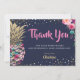 Marinho de abacaxi rosa tropical Cartões de agradecimentos azul